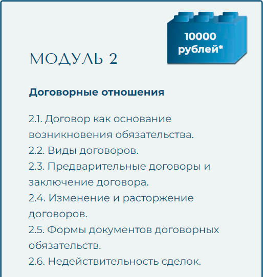 Проявите креативность, логическое мышление и умение комбинировать информацию. Соберите свой замок знаний о договорах из отдельных блоков – уроков и модулей.